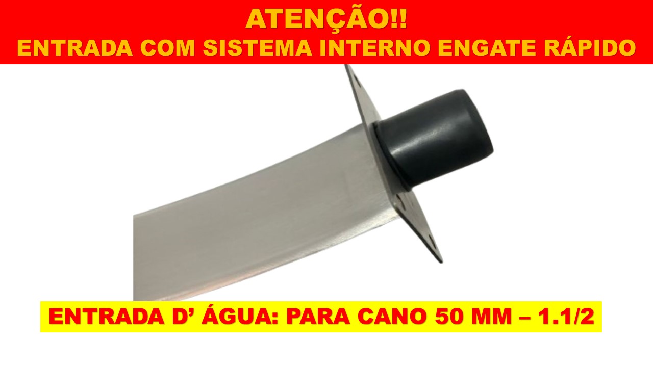 Fabricada em aço inox 304 com acabamento escovado, essa cascata é resistente à corrosão e extremamente durável. O sistema de fixação por parafusos dispensa o uso de cimento e já acompanha o kit de instalação com 4 parafusos e buchas. Também conta com engate rápido de 50 mm, o que torna o encaixe com a tubulação muito mais prático.