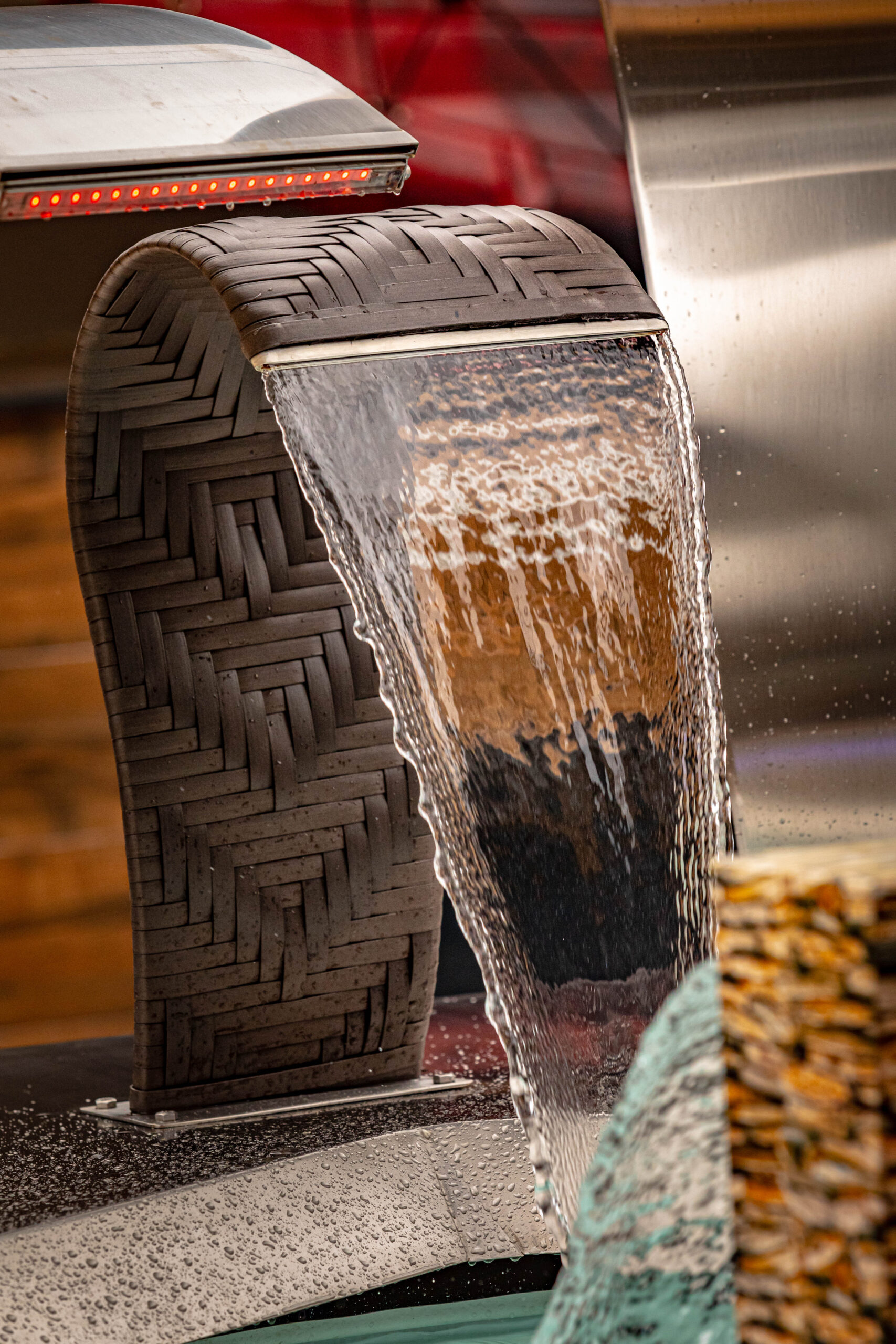 A Cascata Revestida em Junco é a combinação perfeita entre a beleza rústica e a resistência do inox. Com acabamento escovado em inox 304, ela traz sofisticação, durabilidade e um visual único, ideal para quem busca um toque natural e moderno para a área da piscina.